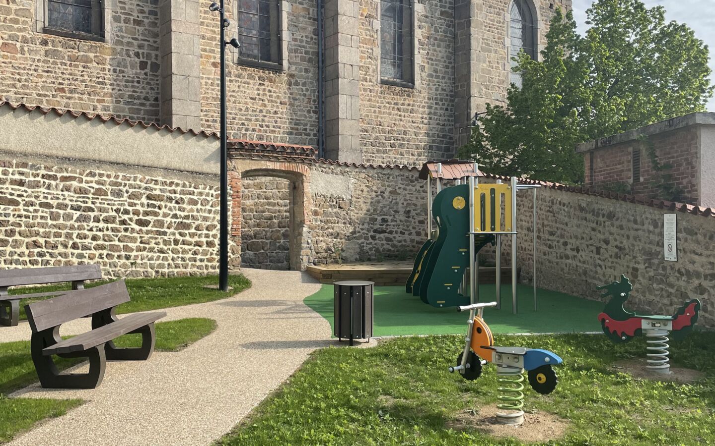 Situé sur les hauteurs du village, Place Rampeau, ce charmant square ombragé et entièrement clôturé est le lieu idéal pour un moment de convivialité.